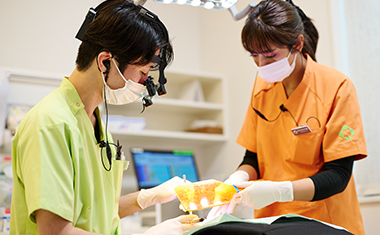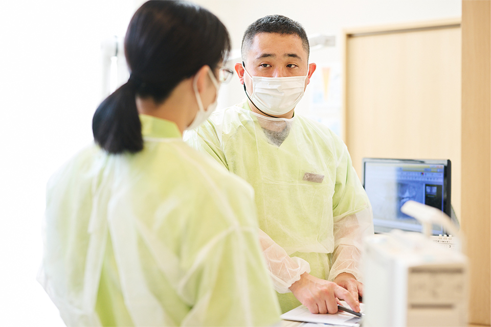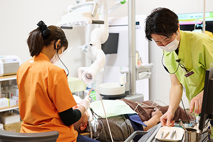 研修施設として「いわいグリーン歯科・矯正歯科」が目指すのは、歯科医師としての確かな技術を身につけ、患者さんに寄り添う優しい心を育むことです。院内には18台ものユニット・チェアーを備えており、幅広い専門分野を持つ歯科医師が多数在籍しています。多くの症例を通して、実践的なスキルを習得することができます。