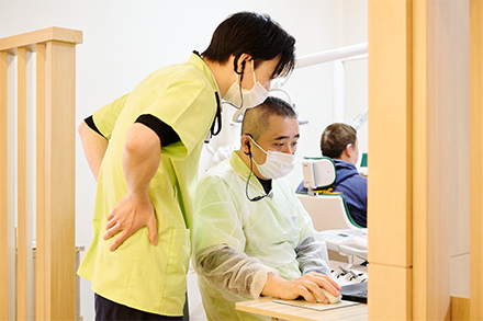 いわいグリーン歯科・矯正歯科では、歯科医師や歯科衛生士などメンバー全員のスキルアップのため、院内研修や外部セミナーなどの機会を多く設けています。