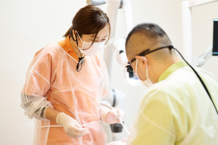 まずは指導医の先生についてアシストしながら、先生が患者さんとどのように接しているかを学びました。歯科受診を怖がっている患者さんも多いですが、患者さんの不安に寄り添いながら徐々に不安を取り除き、この先生になら任せられる、と思っていただけることが何より重要だと学びました。