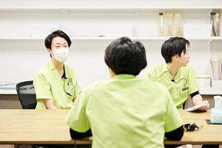 朝礼後は歯科医師同士で症例検討会を行います。ここで幅広い治療の考え方を学ぶことができます。