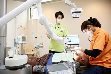 一般歯科、訪問歯科、障害者歯科、摂食・嚥下リハビリテーション、高度な歯周外科治療、セデーション下治療、インプラントなど、幅広い分野を経験し、将来の専門性を磨くのに必ず役に立ちます。